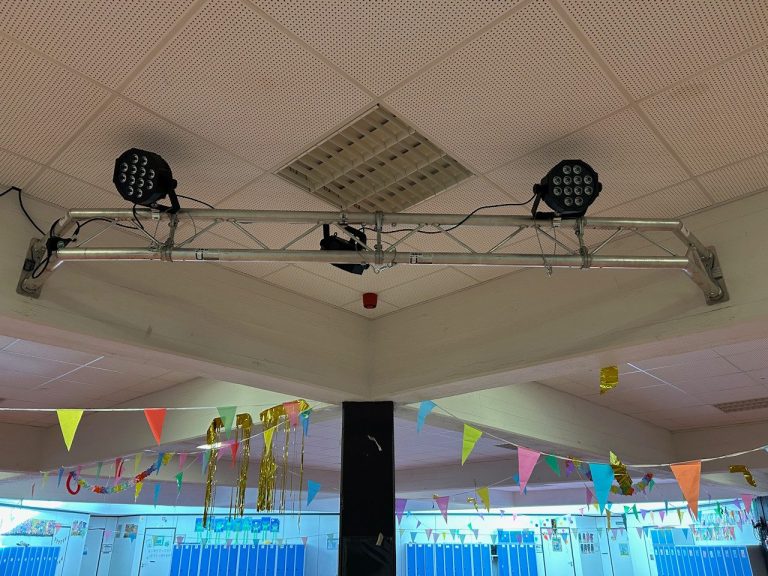 Der Förderverein hat die Veranstaltungsbühne mit einer neuen modernen Bühnenbeleuchtung ausgestattet. Die Anlage wurde kürzlich angeschafft und gemeinsam montiert, um die Bühne bei Aufführungen und Veranstaltungen künftig besser in Szene zu setzen.